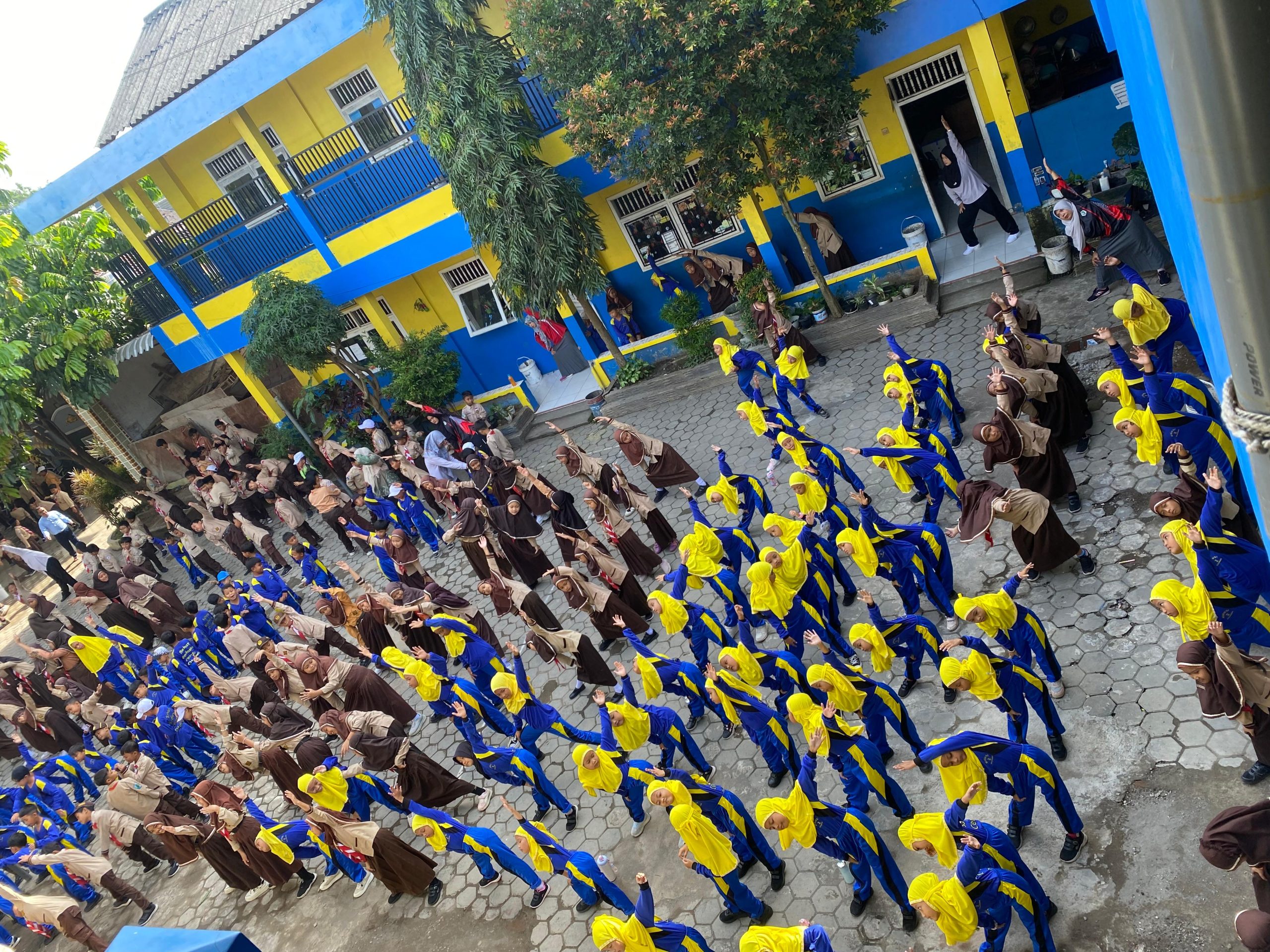 Yang menarik dari kegiatan ini adalah tidak adanya sekat antara pengajar dan peserta didik. Bapak dan Ibu guru turut berbaris rapi, membaur bersama siswa, mengikuti setiap gerakan senam dengan penuh semangat. Irama musik yang energik memandu gerakan kaki dan tangan, menciptakan gelombang semangat yang merata di seluruh lapangan.